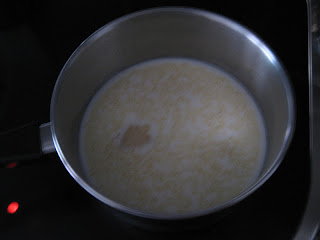 ponemos en una cazuela la leche, el azúcar y la sémola, dejamos hervir 10 minutos.